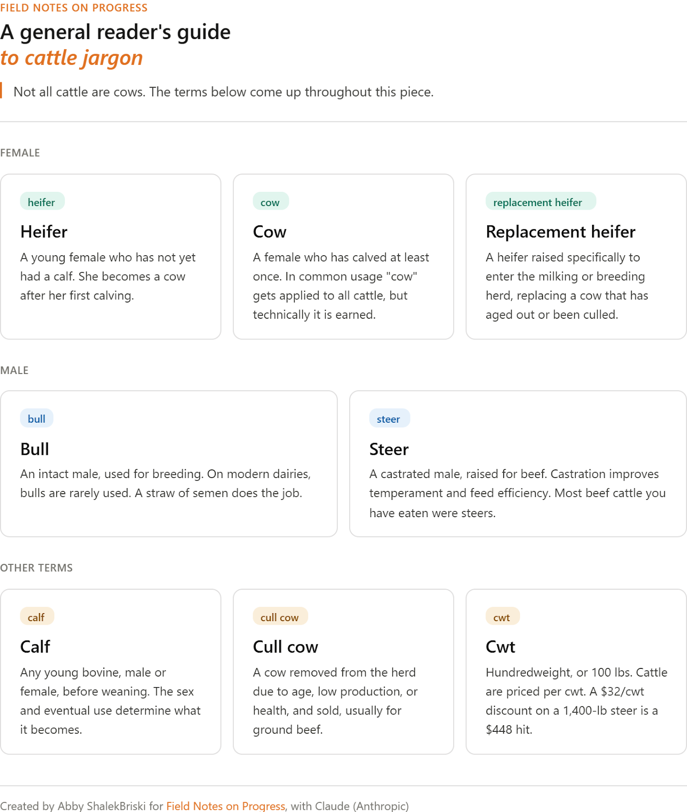 Thanks to Mike Riggs , Alexander Kustov , Rhishi Pethe , Jeff Fong , Deric Tilson, Garth Gatson , and Ryan Loy , all of whom read drafts of this piece at various stages and saved me from at least a few bad arguments, overclaims, and unfortunate phrasings. Any remaining errors, eccentricities, or excess enthusiasm about cattle reproduction are, of course, my own.